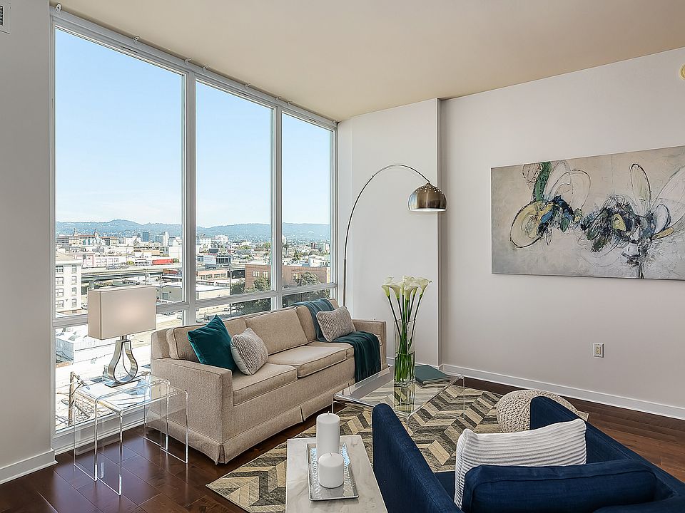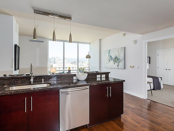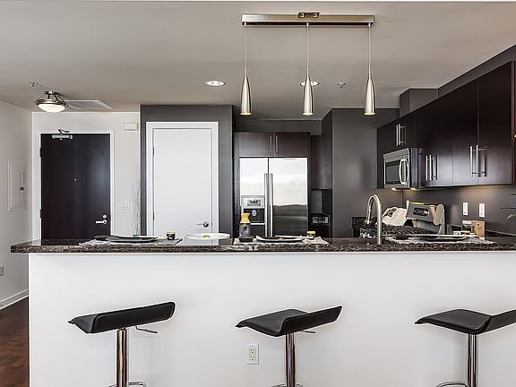 Modern high-rise living in this stunning luxury condo at The Ellington. Experience beautiful city views and elegant, open space. The large kitchen is nicely appointed with stainless Bosch appliances, granite counters, and abundant cabinets. Other highlights include A/C, balcony, parking, & storage.