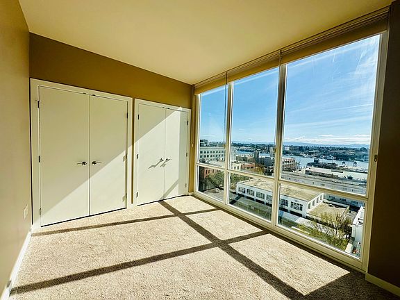 Experience luxury living in the heart of Oakland at this stunning 2 bedroom, 1 bathroom condo apartment. With amenities such as an in-unit washer and dryer, secure entry building, 24-hour attended concierge desk, gated above-street parking on the 2nd floor, community gym, and private access elevators, you'll have everything you need right at your fingertips. Enjoy breathtaking views of the Jack London Square Marina and Bay from your private balcony, and relax in the community pool and hot tub with BBQ area. With brand new hypoallergenic carpet in the bedrooms, engineered bamboo hardwood floors, and luxury stainless steel Bosch appliances, this apartment is the epitome of modern elegance. Just 2 blocks from the Oakland Ferry Building, commuting to San Francisco or Alameda is a breeze. Don't miss out on this incredible opportunity to live in one of Oakland's most desirable locations. REQUIREMENTS: Must have 700 Credit Score or above, verifiable employment at least 2.5x rent, and positive past landlord references. Each adult over 18 must fill out an online application. TERM: Available Now! 1 Year Lease, after that rolls into month to month UTILITIES: Water and garbage included. Resident pays for PG&E & cable/internet SECURITY DEPOSIT: same as rent PET: 2 dogs and/or cats permitted PARKING: 1 remote operated gated above-ground 2nd floor parking spot included with rent. An additional parking spot and storage space available for $150 a month LAUNDRY: In-unit washer and dryer MGMT: Professionally managed by Myerhoff & Associates. Pay rent online & place maintenance requests online MOVE IN FEE: Move-In/Move-Out Fee $200.00 Payable to the Association by Owners to cover the costs associated with resident registration change, move, and resident orientation. This fee is collected every time there is a change in residency (owner or tenant) in a Unit and is non-refundable. THE APARTMENT: Spacious light filled main living area featuring stunning Bay views of the Jack London Marina and the glistening community pool Engineered Bamboo hardwood floors and open floorplan between the living room and kitchen Kitchen with beautiful Bosch stainless steel appliances (large fridge, gas stove, microwave, and dishwasher), lots of cabinet space, and granite countertops Second bedroom with amazing floor to ceiling windows is perfect for an office or secondary bedroom, has a wall of closets Primary bedroom has room for a queen or king sized bed, has a private balcony, and 2 large closets Spacious bathroom features a large corner shower, soaking tub and double vanity Stainless fans, Air conditioning, and custom window shades throughout THE BUILDING: The Ellington building is ADA complaint and gives you luxurious living in a convenient location. It features a 50 foot pool and spa with a BBQ area, a community fitness center, a club room with full kitchen ideal for hosting parties, common area WIFI, a gated secure parking garage, a mailroom with secure package delivery, and a 24 hour Concierge desk THE NEIGHBORHOOD: Located in the Downtown Oakland neighborhood of Jack London Square you will be close to all that vibrant Oakland has to offer! Award winning dining, nightlife, jazz music and a stroll along the boardwalk are blocks away. Exciting dining and shopping in Chinatown, Old Oakland, and Uptown, and Lake Merritt are nearby. Easily get to the 12th St or Lake Merritt BART stations or the Oakland Ferry Terminal. Farmer's markets happen weekly nearby on Fridays and Sundays. Close freeway access gives you an easy drive to SF, Emeryville, Berkeley, or the North or South Bay. Posted by Laura Shy at Myerhoff and Associates (DRE: 01946412)