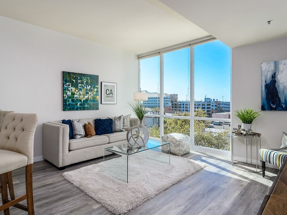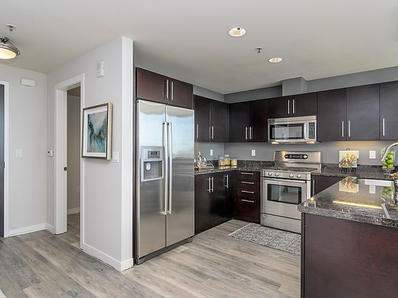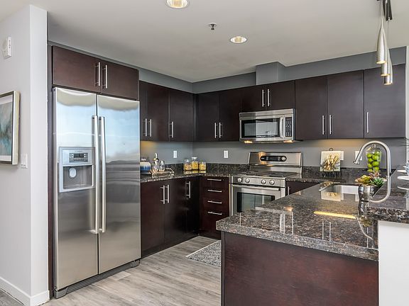Experience upscale modern living at The Ellington in Jack London Square. Sunny Western exposures with immersive city views, giant walk-in closet and separate laundry room make this one-bedroom, one-bath home feel expansive. This picture perfect home features stainless steel appliances, granite counter tops, and floor-to-ceiling windows throughout. Enjoy scenic water views from the private balcony adjoining the master suite.