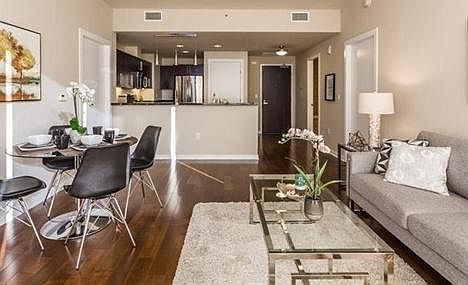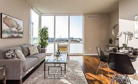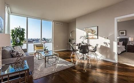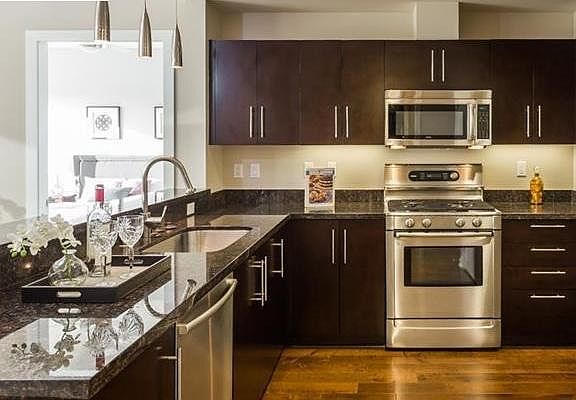 Stunning and modern two-bedroom, two-bath on the 5th floor is located at The Ellington. Spacious & open floor plan with beautiful sunset views through the large floor-to-ceiling windows. Elegant dark color scheme includes espresso hardwood floors and dark granite countertops with all SS appliances. Rare for the building double balconies, one off Primary & one off Guest bedroom. Luxurious primary bathroom: Kohler tub, separate frameless glass shower enclosure, dual sinks, linen closet. Controlled heat and A/C, in-unit washer/dryer. Unit features 2 parking spaces and a large storage locker. 24-hour security and daily concierge distinguishes this community from others in Jack London Square. State-of-the-art fitness center, 50-foot lap pool & spa, and a stylish club room. BART, Amtrak, SF Ferry steps away and easy highway access. Sorry no smoking allowed in unit or building. No pets. Apply online at bshpm.com Water and Garbage included