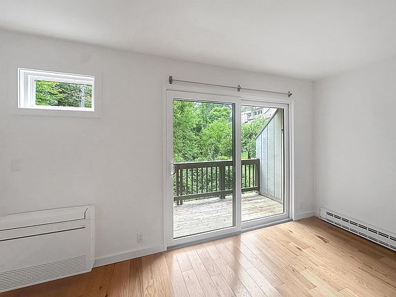 Welcome to this highly desirable, in-town Hanover location at Brook Hollow Condominiums. This condo unit features two bedrooms with hardwood floors and upgraded full baths. The primary bedroom boasts an ensuite bath and double closets. The open-concept living/dining area opens to a private balcony, providing views and sounds of Girl Brook and the landscaped grounds. The kitchen boasts butcherblock countertops, floating shelves, and ample light and space making it a nice space to cook and enjoy a meal. Recent updates include new windows and a sliding glass door, ensuring energy efficiency and comfort. A newly installed mini-split system keeps you cool in the summer and offsets the baseboard heating in the winter. Additional storage is available in the exterior shed. The owner has also removed all the popcorn ceilings, giving the home a fresh, modern feel. Association amenities enhance your living experience with a clubhouse, an in-ground pool, and a barbecue area. Outdoor enthusiasts will appreciate the immediate access to Girl Brook Trail. This condo's convenient location is within minutes of downtown Hanover and the Dartmouth College campus, making it perfect for those who value easy living and accessibility.