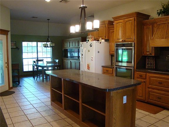 Beautiful setting and very well maintained home on park like 1.75 acre lot. This spacious floor plan is wonderful use of space. The kitchen features a huge island and lots of cabinets and counters and newer appliances. The master suite has a jetted tub with separate shower, and double vanity. The master closet is HUGE. The other two bedrooms are large and have nice closets and ceiling fans. The shop/outbuilding is 25x25. The large back yard has covered patio, newer above ground pool, storm shelter, and shop. Schedule a showing today.