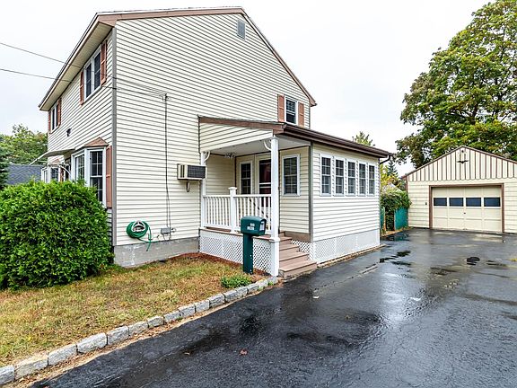 Bring your finishing touches to this south-side cape style home situated on two lots with a one car garage and shed. Enter through the covered side deck into your mudroom with closet space and industrial style carpet tiles for convenience for those messy New England months. Step into your kitchen with ceramic tiled flooring, country like cabinets which include a wine rack, bread cabinet, and a little desk nook, electric cooktop, s/s microwave, refrigerator and dishwasher. Dining room and living room with bay windows, bathroom, and a bonus office or den space with a walkout deck into your back yard. With these two lots, there are plenty of outdoor entertaining opportunities. Upstairs features 3 bedrooms, and a 3/4 bathroom. Home has an unfinished basement with all your utilities, as well as a washer/dryer. Ample space for your storage needs.