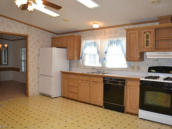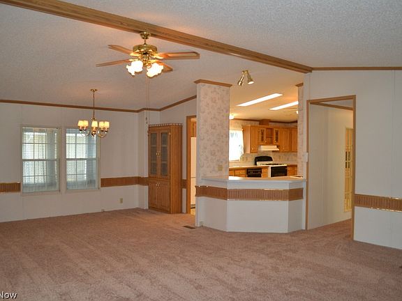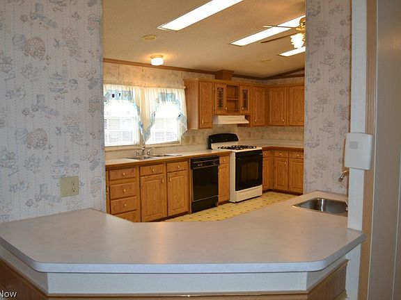 One of the Most Spacious Homes on one of the Most Desirable Lots in the Adult 55+ Navarre Village Community! Wonderful Wooded Back Yard is Full of Nature - No Neighbors Behind You in this Location! Double Wide with Glassed-in Porch for Three Season Entertaining. 18 x 13 Eat-In Kitchen with Appliances and Prep Sink/Wet Bar. Built-In Hutch in Dining Room. Large Master Suite with Two Closets, En Suite Bath with Soaking Tub, Double Sinks and Separate Shower. First Floor Laundry Room with Cabinets and Laundry Sink. Carport Plus Extended Concrete Pad for Additional Parking. Storage Shed. Newer 1992 Skyline Deluxe Model. New Carpet has Just Been Installed in Bedrooms and Living Area. Home is in Move-In Condition. Navarre Village is a 55+ Adult Community.