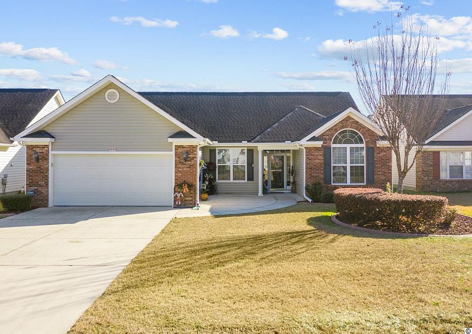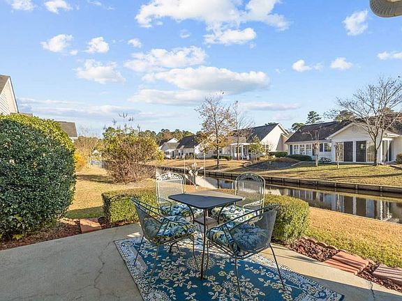 Elegant living in this 3BD/2BA lakefront home in the 55+ Myrtle Trace neighborhood. This custom-built "Annandale" floor plan is appealing to all with the great room focused in the center of the home with a fireplace and built-in bookcases. The formal dining room is perfect for entertaining or choose to relax in the quaint breakfast nook. This kitchen features white cabinets, granite countertops, tile backsplash, under cabinet lighting, island, breakfast bar, pantry and all appliances including the washer and dryer in the laundry room. You'll love the water view from the Carolina room overlooking the patio. Master bedroom with tray ceiling, crown molding, walk-in closet and private master bath with full shower, double sink, linen closet and transom window for natural light. Two guest bedrooms and bath. The office/flex room adjacent to the great room can perfectly accommodate your needs. Hardwood and tile floors in the main areas with carpet in the bedrooms. Garage has built-in shelving, closet, heater, utility sink and mandoor to the side yard. Additional features include water heater and HVAC with air filter replaced in 2016, irrigation, gutters, transferable termite bond and 2" blinds. Neighborhood pool and clubhouse plus the HOA takes care of first 10' of the front yard. What a beautiful place to call home!!