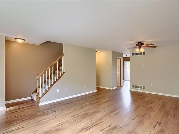 Charming townhome in desirable Seven Fields w/convenient access to major highways, restaurants & shopping. Walk down the tree lined street & sidewalk community to your charming entry. The expansive family room features wood laminate flooring, sun filled windows & is a modern tone. The open layout of the home flows through to the chef's kitchen w/an eat in dining area, generous counter space, abundant storage & a stainless stove. A private, quaint deck is accessible from the kitchen & perfect for a morning beverage. Ascend to the vaulted owner's suite w/a stylish tone & a private BA featuring a tub/shower combo. A guest BR has a private BA, vaulted ceiling, ample storage & vivid window. The versatile, recently finished lower-level features knotty pine wood paneling & custom Pebble stone flooring. Laundry is located here. Community includes Seven Fields community pool, club house, parks & amenities available. This home is ready for your design!