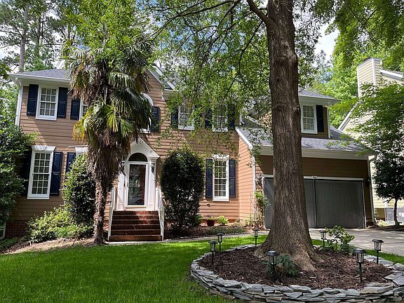 Well maintained house is located in Park Village N'hood, a well established community in Cary. It features two story foyer, formal dining, living and family rooms. Spacious kitchen with elevated ceilings, granite counters, island & SS appliances is open to a large family room with a gas log fireplace. Great size sunroom can be an excellent office. Oversize master bedroom with elevated ceiling is attached to a bathroom with newly updated shower, double vanity & WIC & separate tub. Updated roof & gutter guards, updated light fixtures, tankless gas water heater. Wooded backyard. Neighborhood has walking trails connected to the American Tobacco Trail greenway, parks, pond, playground and pool. The house is within minutes to schools, Davis Dr Park, Ed Yerha Park, grocery stores, restaurants & shops.