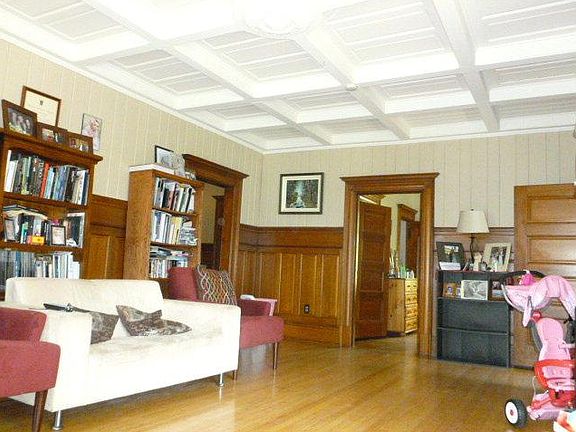Unique stone exterior opens to wonderful Tudor ceiling in living room. Beautiful birds eye maple doors and trim displays craftmanship and attention to detail. Relax with a cool drink in the slate floored screened patio. Single car garage under.