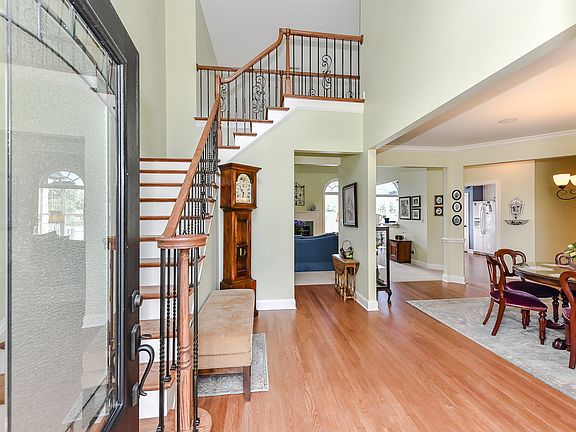 Fantastic home overlooking the pond at Bailiwyck. Beautiful floorplan features master BR on main level, 2-story great room and foyer, beautiful finishes, and great views from every window. Finished basement is a full second living quarters with kitchen, bedroom, living room w/ fireplace, den/office, dining room, full bath, and second laundry room. Perfect for multi-generational households!! Finishes include wood flooring and stair treads, granite counters, stair railings with metal spindles, soaring ceilings, trey ceiling in master BR, custom decorative concrete vanity tops, and much more. Private patio and deck overlook the pond and fountain. Neighborhood amenities include pool, club house and tennis courts. A solid HOA with healthy cash reserves & low fees. Truly a must-see home.