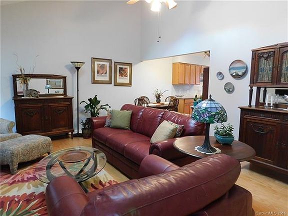 Updated one level unit with mountain views! Move right in to this beautiful home located at the top of Cimmaron on a quiet cul-de-sac. Come home to the living room with soaring vaulted ceiling with skylight and hardwood floors and enjoy your evening by the gas fireplace. Prepare dinner in your sunny kitchen where the 2015 remodel brought new cabinets, granite counters, custom tile backsplash and stainless appliances. Sip your coffee or tea on the wonderful deck overlooking the sunset views. This well designed unit has lots of closets and an oversized garage. Replacement energy efficient windows are already in place. Great location just 10 minutes from Biltmore Village, 15 minutes to downtown, 15 minutes from Biltmore Park and just 5 minutes to I40. Low maintenance fees include water.