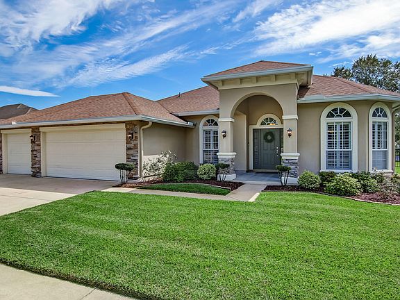 Beautiful all stucco lake front home in the gated community of Hidden Lake Estates. Enjoy the beautiful view of the 42 acre lake from the screened lanai. Rhino-Shield exterior paint/finish requires little to no maintenance. Home features large windows with plantation shutters and crown molding throughout. Spacious kitchen with granite countertops and stainless appliances overlooking family room. Large master suite offers step tray ceiling, bay window, bathroom w/ two sinks, spacious vanity, garden tub and separate shower. Laundry room w/cabinets. Floorplan also features formal living room and dining room, this home is perfect for a very casual lifestyle and entertaining guests. Make this home yours today!
