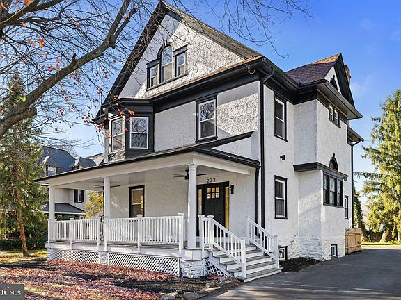 Experience the timeless character of this impeccably reimagined Ardmore residence within a tranquil, tree-lined neighborhood! Exuding captivating curb appeal, the 1905-built abode welcomes you with an inviting covered porch that transitions to a 2,906 sq ft beautifully modernized interior. A fusion of high ceilings, recessed lighting, crisp white tones, and gorgeous wide-plank flooring is complemented by exquisite vintage touches, such as artisan stained glass windows and intricate staircase rail details. Brilliant sunlight spills through large windows, creating a bright, vibrant atmosphere across the open-concept main gathering areas. Sure to delight the avid cook, the well-designed kitchen features top-notch stainless steel appliances, sleek cabinetry, quartz backsplash and countertops, and a multi-seater, waterfall island. Retire to the comfortable proportions of the upper-level bedrooms, all graced with ample storage and plush carpeting. Two stylishly tiled shared baths cater to the secondary quarters on each floor. Outshining them all, the primary suite is a sanctuary all its own with a ceiling fan, a walk-in closet, and a luxurious ensuite with dual vanities and an oversized frameless shower. Outside, a sprawling backyard beckons you to hold weekend celebrations in seclusion. Additional features include a laundry room and a generous, versatile basement. With local shopping, dining, schools, transportation, and entertainment all easily accessible, why wait? Schedule a tour today to see it for yourself!
