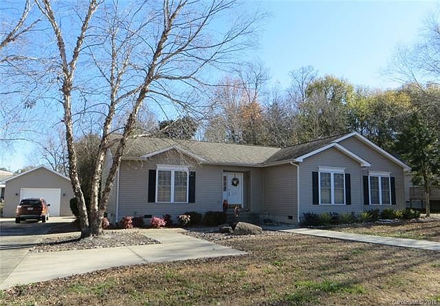 Immaculate & well cared for RANCH in the heart of Clover. Pretty curb appeal with mature trees & landscaping. Large level lot with long drive for plenty of parking, + detached garage with electric, water & compressed air. Relaxing rear deck. Bright & spacious rooms with crown molding throughout. Tile in baths & Kitchen. Attractive wood laminate floors in entry, Living & Dining Rooms, hallway and bedrooms. No carpet! Newer HVAC. (2016) Central Vac + Security System. Eat-in Kitchen has SS appliances, work island. Formal Dining is accented by chair rail. Spacious Master Suite has a closet + WIC, dual sink vanity, garden tub & separate shower. Two large secondary bedrooms, one with double closets. Ceiling fans in all bedrooms. Good-sized Laundry Room has lots of extra built-in storage. Great location within walking distance to downtown Clover. Low SC taxes, no HOA and award-winning schools!