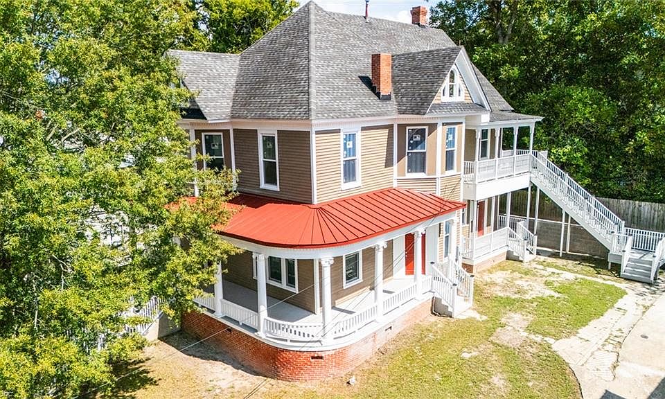 4 years of major restoration makes this Victorian mansion a blend of history and modern living. New floor joists, Roof decking, Framing for wrap around porches, Scamozzi structural columns, 23 added concrete piers, Iron C- channels, Anderson Windows, Metal Roof, Tiled Bathrooms, Designer Doors, New retaining wall and much more to list. Ask for the restoration handbook / engineering details from your agent. 8 bedrooms, 4 bath, 4 entrances, 2 full kitchens. Option to live on one floor and rent the other ones. Home belonged to famous former mayor, Andrew Damiani. One Block to all activities in downtown Suffolk. Owner/Agent.