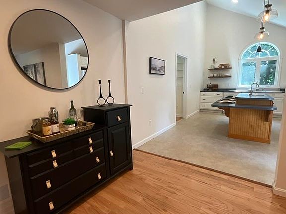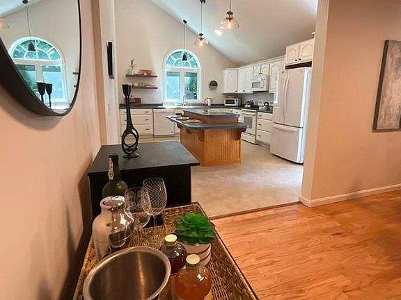 Adorable, move in ready, single floor living in Portsmouth! 3.2 miles to downtown and a neighborhood with new sidewalks and a park. Deceivingly roomy! This house has a large eat in kitchen, large island and is open to the dining room. The cathedral ceiling in kitchen allows for ample cabinets and an oversized window letting in lots of natural light. The primary bedroom has a full bath with storage and is good size. The living room's large window makes the space sunny and bright as well as being a good size space. Guest bathroom was renovated in May of 2023 and it up to the minute in style. Hardwood floors installed in living and dining area, vinyl plank in primary bedroom. Interior of the home has all been freshly painted in neutral colors, new water heater and new dryer. Seller's are relocating south - take advantage of the opportunity for easy living in a lovely ranch. First showings at open house SAT 8/5 and SUN 8/6 12-2pm