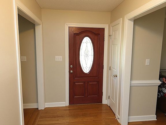 First floor rooms just professionally painted in soft neutral color. Wonderful move-in ready home on a quiet, private 1.3 acre heavily wooded lot. You will love the full-length rocking chair front porch. Completely remodeled primary bath with glazed porcelain tile, level entry shower with rain head shower, mosaic tile & tile wainscotting. Ceramic tile floor in the sunny kitchen breakfast area, formal dining room with hardwood floors, large first floor great room with hardwood floors, gas log fireplace & French doors leading to the deck overlooking the wooded lot. Crown molding in the dining room & great room. 3 bedrooms along with a spacious bonus room over garage on the 2nd floor with hardwoods. Carpet in 2nd floor bedrooms. Primary bedroom has large walk-in closet & vaulted ceiling. Close to shopping & schools, I-40 & soon finished I-540. Upper & lower HVAC systems replaced within the past 3 years. New roof in 2019, water heater in 2021, & garage door opener in 2022. Oversized gutters & downspouts installed in 2017. You will not be disappointed - welcome home!