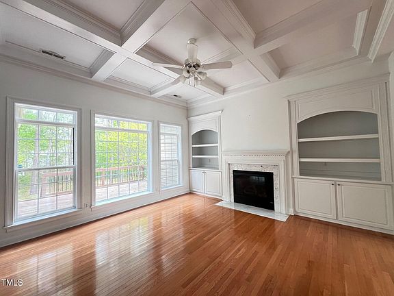This is the BEST deal in Cary!!! Priced about $40,000 below the tax value. Gorgeous three-sided brick home in the desirable Carramore subdivision! Situated on over half an acre, this home backs to Preston Village and offers a spacious open floor plan. The first-floor owner's suite features a tray ceiling, dual walk-in closets, a garden tub, and a separate shower. The two-story foyer leads into a living room with coffered ceilings and built-in shelves, creating a warm and elegant atmosphere. The gourmet kitchen includes an electric cooktop, double ovens, granite countertops, a tile backsplash, and a cozy breakfast nook. Upstairs, you'll find three additional bedrooms, two full bathrooms, and a large bonus room—perfect for family entertainment or a home theater. Located in an excellent school district!