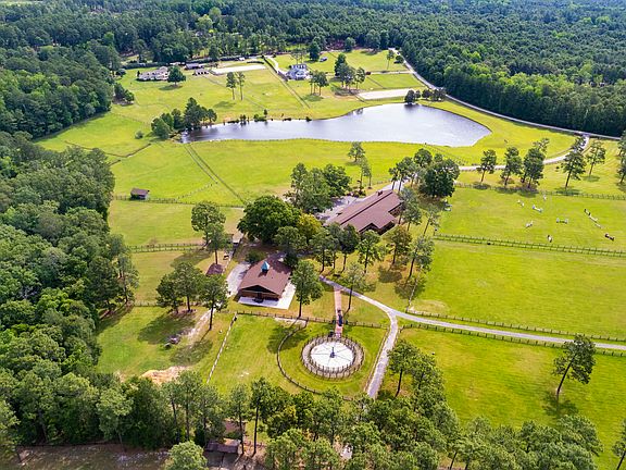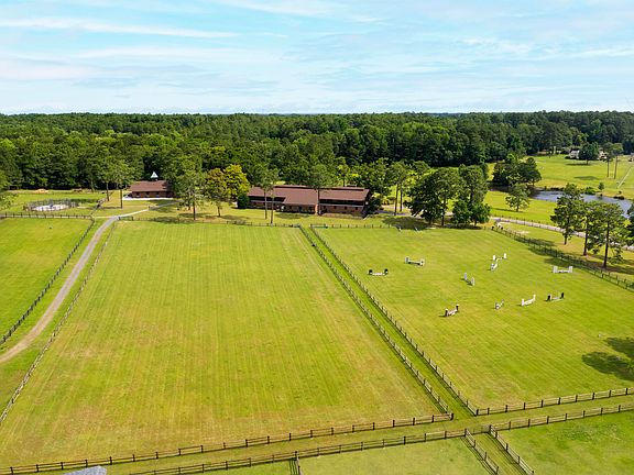 Blue Ridge Farm....historic farm in the heart of Southern Pines Horse Country. The classic hunt box style home was custom designed by John Foster Faulk, a prominent architect in Pinehurst in the 1960's. Over the years the current owners have worked with Carl Kessler, licensed in historical renovations, to ensure the historical integrity of the home & finishes. Situated atop a hill, the home & barn offer stunning views of paddocks, pond and riding field. Inside you will find architectural features such as solid 'wormy chestnut' doors, beams, paneling, and trim work throughout the living space, wood and herringbone brick floors, and an expansive brick fireplace. The 5000 sqft unfinished loft space houses the laundry room and multiple storage rooms with ample room to expand the main residence. The Downstairs you will find a 12 stall barn with 1 BR/1BA apartment or groom's quarters. There are double wash stalls, lovely tack and feed rooms, an interior treatment room, laundry facilities, separate office,and ample storage. The stalls are all rubber matted and oversized at 14x14 with custom grills & doors. The auxiliary barn, used by previous owners as the mare and foaling barn, offers 3 stalls two of which flank a viewing room w/ bathroom for foal watching, a workshop, and trailer/equipment storage. At just under 30.5 acres, there are 9 paddocks, multiple run in sheds and a large field for jumping and riding. The 'Walkerboy Eurociser' is an excellent addition to any training program! A full list of special features and a historical overview of the farm are available by request from owners. The detail and architectural features of this property are unmatched and would simply be impossible to recreate or build in today's world. This is truly a once in a lifetime property!