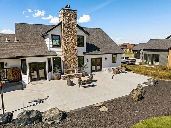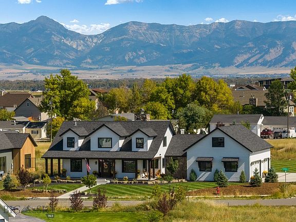 This exquisitely crafted, meticulously maintained dream home in Amsterdam Village is the perfect balance of relaxation, leisure and luxury. The modern retreat is situated on over half acre of flawless landscapin, backing to a designated park and including an amazing two-story outdoor rock fireplace, massive concrete patio, and wrap around covered porch to enjoy rural and mountain views in all directions. This 3,300+ square foot, 4 bed/3.5 bath home has an oversized heated 3-car garage, hot tub hookups and deep (336 foot) well. The main floor primary suite boasts an ensuite with beautiful copper tub, custom tiled walk-in shower and abundant closet space. The chef’s kitchen has a large island and pantry, custom cabinetry, granite countertops and gas range. Rounding out the main floor is a generous sized open living and dining area flooded with natural light from expansive windows and a vaulted ceiling, an office/den, extra bedroom, bathroom and laundry room conveniently located off garage. Up the impressive open staircase are two large bedrooms, both with walk-in closets and a full bathroom. A second set of stairs leads you to an enormous flex room with covered balcony. Additional upgrades include 3 heating zones with air conditioning, gorgeous interior wood burning fireplace, custom barn doors, Pottery Barn lighting, arsenic system and so many more! Amsterdam Village is located a short 15 miles from Bozeman, 10 miles from the Bozeman airport and 50 miles to Big Sky. Must see to appreciate!