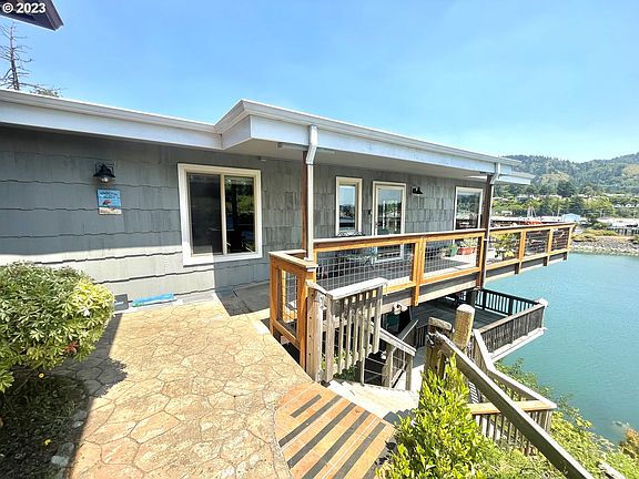 RIVER FRONT! Breathtaking River, Bay AND ocean views from every room in this beautifully maintained detached condominium located in Brookings, OR. Hear, see and smell the ocean as you relax on the generously sized balcony whether it be from the upper, or lower portion. The lower balcony is a great place to store kayaks, fishing equipment etc as it is covered with ample room. This home offers an open floor concept with quartz countertops throughout, Beautiful custom cabinetry throughout with soft close hardware. The appliances are stainless and in great condition. There is a heat pump for the whole home that allows you to set your comfort level whether it be hot, or cold. There are also tasteful furnishings as well as newer Samsung washer/dryer that will be included with the sale! From your balcony you will see kayakers, sea lions, otters, seals, eagles, osprey, and SALMON! Not to mention all the fishing boats, Coast guard station, commercial unloading dock for the local fisheries and more! Chetco river Fishing includes Salmon, Trout and even the elusive steelhead. Watch the annual kite festival and 4th of July fireworks right from the comfort of your own home. No matter where you look there is always something great to see with this amazing location and its bountiful amount of windows. This is a rare detached condo in the Smugglers Cove Condos subdivision as it does not share any walls, nor do you look into anyones windows or walls, Just the beautiful and wild scenery that Brookings and the Chetco River have to offer. Make an appointment to see this gem today!