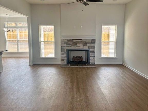 Enjoy outdoor living on the covered porch, surrounded by landscaped greenery. A programmable sprinkler system helps maintain a lush lawn with ease. Community amenities include natural gas service, sidewalks, street trees, an activity field, an asphalt recreational trail, and a resort-style pool with pavilion and pool house.