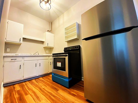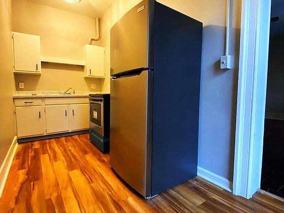 Everything included! This one bedroom unit offers a large living room area, large enough for a couch and television area, a dining table and a desk space as well if desired. Super high ceilings make it feel even more spacious! Ceiling fan in living room. Kitchen is cozy and fully functional with new counter tops, new lighting and new stainless steel stove and fridge. Bathroom has also received some updates, including new lighting, new vanity, mirror, lighting and toilet. Small bedroom area in rear will accommodate a queen bed but only that! Or use a single bed and have some extra space. Bedroom has full size closet. This unit does not have central a/c but does come with one window unit. All utilities are included on this unit. Rent covers everything. Gas, electric, water included. Tenant covers their own cable/internet if they wish. This is a great downtown location. Laundry room on site for tenants use. This is strictly a no-smoking building. Call with interest today! 12 Month Lease