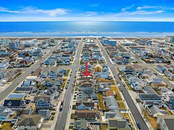 Picture perfect escape to the shore! Beautifully updated and immaculately maintained 4 bedroom, 2-1/2 bath twin just two blocks off the Denver Ave Beach in Wildwood Crest and close to Diamond Beach. The stunning kitchen was remodeled in 2022 with white cabinetry, quartz counters, glass tile backsplash, a center island with seating, gas cooking, and stainless-steel range hood and appliances. The kitchen opens to the dining area with a chic, built-in coffee bar and also opens to the living room which features a modern recessed electric fireplace with an incredibly realistic flame effect and an attractive stacked stone surround. The fireplace can be used for ambiance alone or with the optional heat setting for cozy warmth. From the kitchen/dining area, step out to a fenced-in rear yard which offers a lovely seating and al fresco eating area under a pretty pergola for shade and privacy. The rear yard also has an outdoor shower and storage shed. Back inside, the main level features luxury vinyl wide-plank flooring throughout. A large foyer area, powder room with a walk-in storage pantry/closet, and a turned staircase complete the main floor. Upstairs, the main bedroom has a vaulted ceiling, large walk-in closet with built-in organizers, and an ensuite bath with dual vanity. The front bedroom has a small deck where you can sit, relax, and catch a view of the ocean. Two other spacious bedrooms and a full hall bath complete the upper level. 1-car attached garage and driveway parking. Built in 2005 with natural gas heat and central air (condenser unit replaced in 2021). The roof has a reflective cool roof coating to help keep energy costs down. Warm, neutral, and stylish decor throughout, great natural light, and move-in ready. Great location on a quiet residential street; this home is a winner in every aspect.