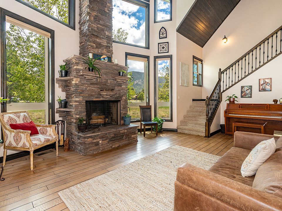 Welcome to a spectacular home on 5 acres with a private well, stunning views, a mother-in-law suite over the garage and a ''flex'' building that can be used as a gym, office, studio, or combination. This home is fabulous. Enjoy the great room with soaring ceilings and windows that invite the beauty of the mountains in, a master suite on the main level, upgraded chef's kitchen, and a fabulous media room with a separate library. Upstairs find two large en-suite bedrooms and a spacious loft that is perfect as a second living area, office or game room. Nestled in the mountains, the feel is open, light-filled and exquisitely mountain rustic. Guests or extended family can relax in their private mother in law suite. The 'flex' building with it's own kitchen must be seen to be appreciated.