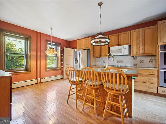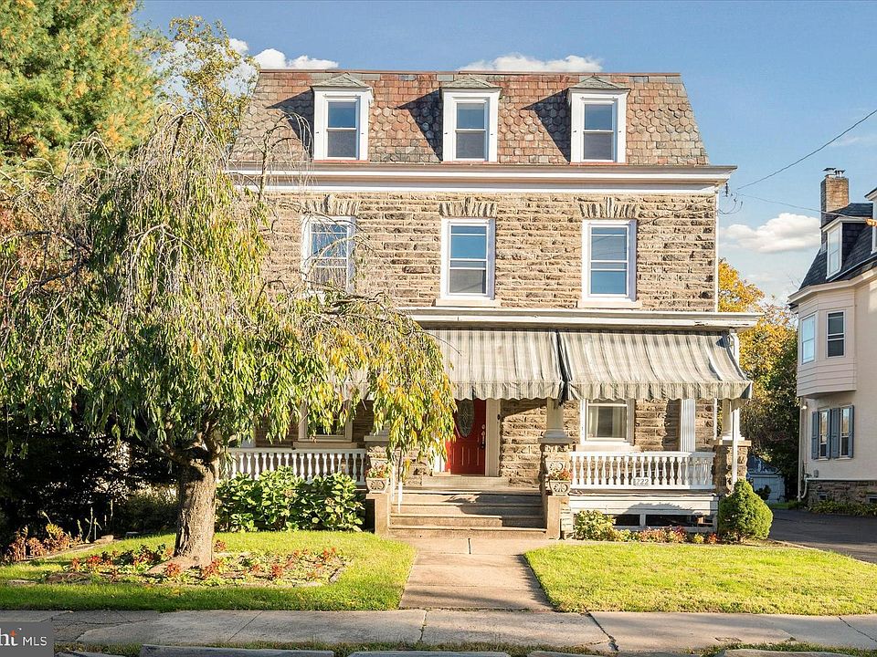 What an incredible opportunity to own a home of this size, at this price point and in a wonderful “walk to everything” Chestnut Hill location! Welcome to this beautiful 3 story stone single just a block from Germantown Avenue and steps to the Gravers Lane train station. You are greeted by an amazing front porch where you could spend days watching the world go by. Step inside and you will find beautiful pine flooring, two large rooms on either side of the the foyer hallway which could serve as living spaces. Just beyond these rooms is a lovely spacious dining room with a hallway to a full bathroom and a large eat-in kitchen. The kitchen includes and island, newer appliances and plenty of cabinet storage. Behind the kitchen is a flex space with more cabinet space and a sink. The perfect spot for entertaining overflow or a mud room. This room leads to the rear garden and driveway area. The enclosed porch could serve a sunny office space or extra room on the first floor. Up the stairway to the second floor you have a very wide second floor hallway with access to a back staircase, four spacious and bright bedrooms, one full bathroom and a second floor laundry room. The third floor offers 4 additional bedrooms and a full bath. The basement is huge with high ceilings and ready to be finished. Enjoy the outdoors in the delightful and low maintenance back garden with a wisteria trellis covered patio. Pull your cars into the large private driveway which leads to a detached garage. The garage could be so many things! A block to Germantown Avenue, enjoy all the offerings and conveniences of living in Chestnut Hill. Close to Wissahickon Trails, The Morris Arboretum, Woodmere Art Museum and so much more. The possibilities and potential are endless at this home! Please note that square footage in public records is 6,276 and is stated as 4,352 in a recent appraisal.