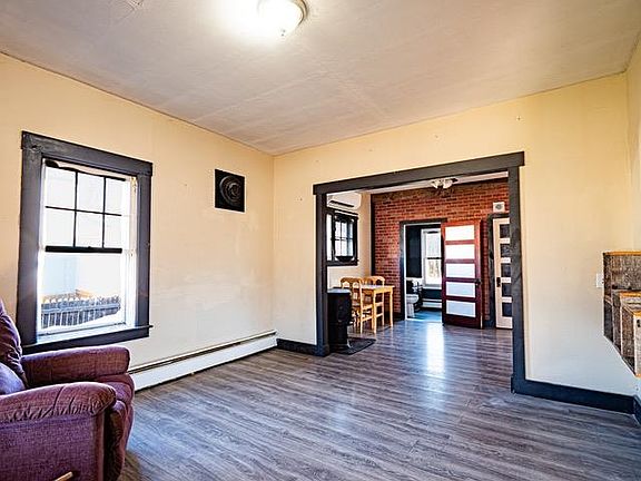 This 1920's red bungalow nestled in the heart of a timeless Vermont village is perfect for the first time homebuyer or the downsizer looking for easy one floor living. The inviting front porch greets you with a welcome space to sit and visit with the neighbors. The living room and dining room are connected for an easy open floor plan. Both rooms have newer laminate flooring and the mini-split keeps both rooms (as well as others) heated or cooled to your liking. The Dining room also offers a Harmen Pellet Stove for another source of heat. The present owner hardly used his boiler (didn't like the price of oil). The primary bedroom and the second bedroom offer original wood flooring. The third bedroom sits at the back of the house and offers laminate flooring and a separate entrance leaving the possibility for use as a home office. The renovated sunlit kitchen features new oak cabinets and a new electric stove. The walkup attic offers room for your excess items. The laundry area is in the basement which is just a few steps from the kitchen and has a concrete floor and high ceilings. The two car garage is over-sized with plenty of storage space. New hot water heater (2022)