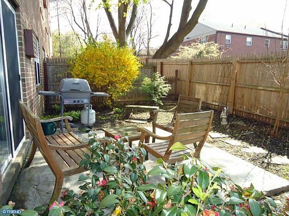 Carefree condo living with private 48'x18' garden! Enjoy gardening and grilling in your own private, fenced garden. Ground floor condominium located at the back for additional privacy. Wood flooring installed in 2007 flows thru foyer, living room, dining room, hallway and bedrooms. The Kitchen has ceramic tile flooring, maple cabinets; spacious, sunny Living Room with sliding door to patio and sunny garden; Dining Room overlooking garden; large Master Bedroom also facing garden with 7'x5'6 walk-in closet and Master Bathroom with maple vanity, tile wainscoting and shower; Bedroom Two with double closet; Hall Bathroom with tile flooring & wainscoting, maple vanity and tub/shower with tile enclosure. Washer/dryer in condo; secure storage locker also on the first floor. Condominium parking lot. You may want to leave the car there and enjoy the walk to Suburban Square, Trader Joe's, the Ardmore Farmer's Market, Main Line Y, local shopping, restaurants, the library and, of course, the train. Garden plan in MLS