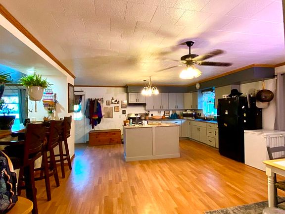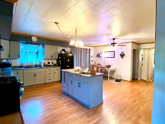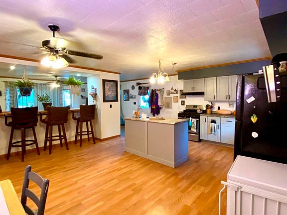 Corner lot home with a great location! Close to town, schools, parks, etc. This 3 bed / 2 bath home welcomes you with a 17x21 open concept, eat in kitchen - also including a bar area with bar stools overlooking the living room! Through the kitchen you'll find the entrance out into the fenced in backyard - perfect for hosting guests & space for growing a garden! Recent updates include - all new cabinets, countertops, sinks, kitchen island w/ sink, newer laminate floors, all new insulation in attic in 2015 & a new metal roof (2 years). There is a hookup for central A/C & has all original hardwood under carpet & laminate. All appliances, washer, dryer, & bar stools stay. The side of the house is lined with trees for more privacy. This home would be a great rental property or family home!