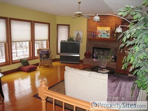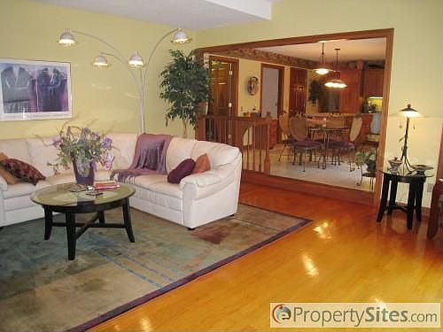 For more information on this home and more, please visit www.century21bradley.com. Spacious home on a quiet park like partially wooded cul-de-sac lot; 2x6 exterior wall construction; Well maintained poplar woodwork&6 panel doors; Open foyer with power room; Formal living room or den; Formal dining room; remodeled kitchen with attractive counter-tops, lighting, fixtures,&flooring; Large family room with wood floors, fireplace, gaslog&wall of windows; Huge master suite is a retreat with sitting room, cath ceil,&large walk-in closet; The on-suite has double sinks, jet tub,&separate shower; 3 good -sized guest BRs&guest bath with 2 sinks; Finished daylite lower level with surround sound; Rough plumbed for bath; Deck ; 3 car gar; New 2013; Water softener; Seller has HMS home Warranty in place-will transfer to buyer-good to 10-12-14.