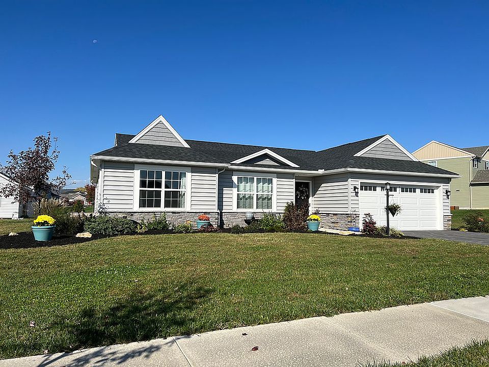 Stunning 1,950 sf ranch home in the New Windy Heights development with 3 bedrooms and 2.5 baths on .39 acres. No wet, smelly basement – true one-level living! Features include: 10 x 12 sunroom, large kitchen, open floor plan, large home office, large utility/laundry room and 2 car garage. This home has upgraded features added during build and also after purchase from builder, including: • Upgraded LVP flooring throughout (except laundry room) with no transition strips. • Recessed lights (some with dimmers) in all rooms and closets • Substantially increased number of outlets, including special locations for outdoor holiday lighting and electronics charging. • Recessed boxes in 3 rooms for flat screen TV hookup • Outdoor faucets on all four sides of the home • 12 x 16 shed with electric • 7’ x 9’ raised white cedar vegetable garden with water run to it for irrigation • REAL wood classic profile baseboard (builder uses fiberboard baseboard) • Entire house repainted over standard builder “white” • 21’ x 10’ concrete patio with a roof added over a 12’ x 10’ section, and includes high ceiling, recessed and dimmable lighting, outdoor rated ceiling fan and hooks for grommet-top curtains • Lovely landscaping with perennials and soaker hoses • Buried downspouts leading to pop-up drains • Epoxy garage floor • Upgraded beaded vinyl siding and wrapped windows vs. shutters (installed by builder) This one is an absolute must-see and will not last long. Seller will consider buyer’s agent fees, depending on the quality of any offer. You must be pre-qualified with a reputable lender to schedule a showing.
