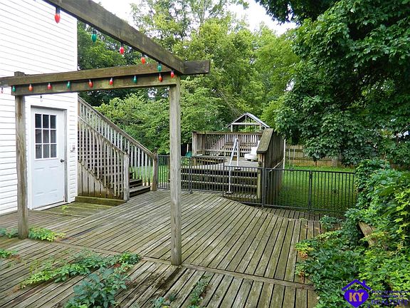 Stately cape cod in very nice older neighborhood. Some hardwood flooring , fireplace, etc., large eat in kitchen and beautiful formal dining. This spacious brick home also has a nice sun room , two car detached garage with attic area perfect for additional storage space. There are numerous exterior decks overlooking the wooded rear yard. You will be able to walk to all the downtown festivities, restaurants, coffee shops, etc. One of the decks features a spa.