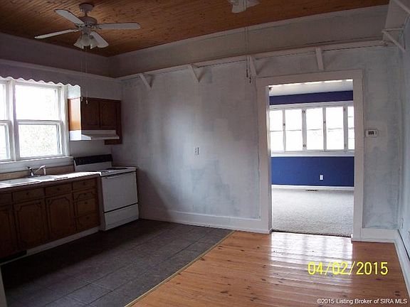 Home with character located in historic downtown Corydon. Great location close to shopping, restaurants and interstate. Home features 2 bedrooms, 1 bath with claw foot tub, large eat-in kitchen, family room, basement and a large back yard. Needs some TLC to become an absolute dollhouse! Home sold as is. Prospective buyers are advised to conduct independent assessment of property condition and features. Information is not verified or warranted. Properties are offered for sale to qualified purchasers without regard to the prospective purchaser's race, color, religion, sex, disability, familial status, or national origin. Sq. Ft. & room sizes are approximate. Taxes are '13 pay '14 and may reflect deductions that may not continue to apply, possibly resulting in a higher tax bill. Equal Housing Opportunity.