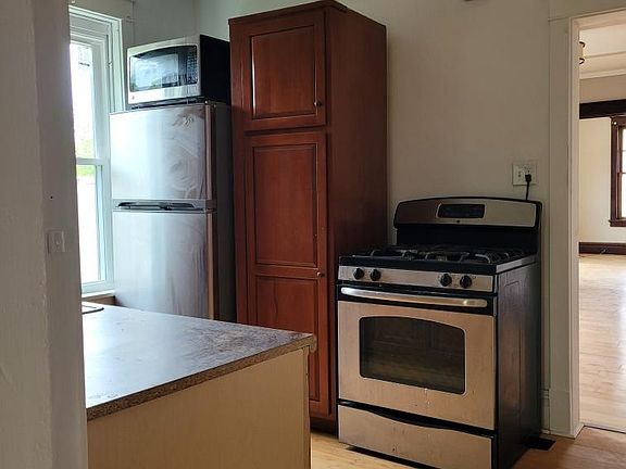 Upgraded home with newer roof, updated kitchen within last 5 years, newer hardwood floors in living room and dining room, French doors, updated bathroom, off street parking and much more! SOLD AS IS at a great price!