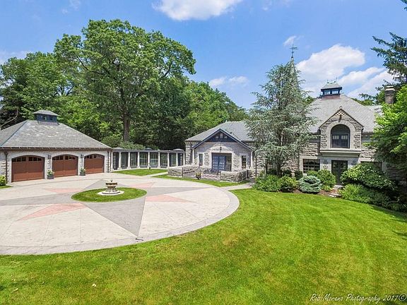Enjoy this SECLUDED RETREAT, only 5 easy minutes from major highways, this magnificent home is situated at the end of a long graceful private drive, barely visible from the street and built on over 2 acres of beautifully manicured grounds. Three stall granite garage w/handsome mahogany doors offers a sink, high ceilings & storage. This carriage house reflects a Richardson Romanesque design w/curved doorways & arched window pediments. The solarium/sunrm is perfect for morning coffee or afternoon relaxation. Step inside the LR w/marble floors, beamed ceilings & FP which flows thru the Den & into the formal DinRm w/granite flr. KIT w/SS appliances, gas stove, custom built cabinets & a pantry. All BRS have HW floors. Master BR w/sitting area w/built-ins, large WI closet, Master BA w/skylights, recessed lighting, & Jacuzzi/whirlpool tub. Walk-out Lower Level boasts a FAM RM w/stone FP, 2nd kitchen w/SS appliances, Playrm, GameRm w/barrel vaulted ceiling, & full BA. Gunite pool! A MUST SEE!