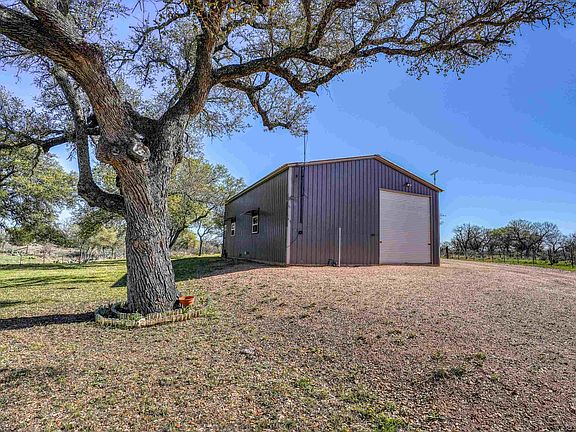 Perfect getaway or beautiful future homesite, you choose! Rare and wonderful 1.837 acres in a quiet area near Llano, covered with gorgeous live oak trees. Nice 40X30 Barndominium with 2 roll up doors and a well done 560 sq ft living area. The living area is thoughtfully designed for easy care and has a large bathroom and many nifty storage features. In addition, there's an awesome outdoor shower to enjoy the birdsong while showering! The barn area includes RV hookups, washer/dryer hookups, and many nice extras. The water well is amazing, logged at 60+ gpm when drilled in 2018. Completely fenced. Everything about this property is pristine and beautiful. Make this your new happy place, it won't be around for long!