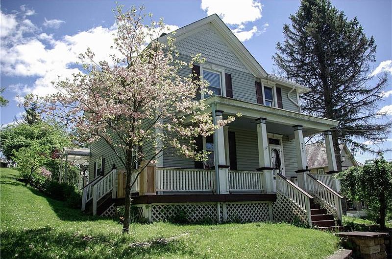 Lovely 2 story Victorian - 3 Bedroom, 2 Bath home with spacious front porch with wrap-around deck, & back porch with pergola. Original woodwork & built-ins! Kitchen offers ample cabinet space & all appliances. Formal living room with gas fireplace, formal dining room, large foyer with built-in cupboards. 1st floor laundry and full bath! Master bedroom with large walk-in closet and full bath with large vanity - accessible from master & also serves other bedrooms. Central air, full basement. Detached one-car garage and additional off-street parking! Close to town for banking, groceries, library, dining, community park. Easy access to I-79 to Cranberry & Pittsburgh.