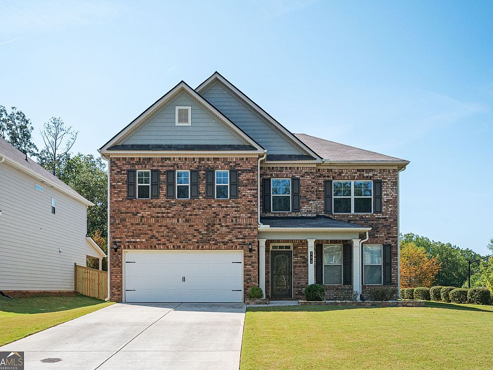 Located conveniently between Downtown Acworth and Woodstock, this charming four bedroom and four bath home is just six years old! From the moment you walk in the door, you'll notice the spacious kitchen and living area with daylight pouring in. This property is designed to easily entertain, with an open concept floor plan on the main level, as well as a guest bedroom and full bath! This lovely home boasts gorgeous stained wood kitchen cabinets with granite counters, and a large kitchen island. Cozy up next to your gas fireplace in the living room or enjoy morning coffee on your private, covered patio with fans and gas grill connection. The garage even has it's own countertop with sink and vent hood, perfect for when larger gatherings need a place to spill over into or can be used as a work space. The dining room is spacious and has chair molding and wainscoting. Once upstairs, you'll appreciate the idea of never having to carry laundry up or down stairs ever again! The laundry room is huge and has a large closet for all of your storage needs! The primary bedroom is spacious and inviting, and the primary bath has dual vanities, a separate tub and shower, and a huge walk-in closet. The spacious secondary bedrooms upstairs each have their own private en-suite bathroom. So many things to do close by! Patriots Park, Hobgood Park, Eagle Drive shopping, Downtown Woodstock, Downtown Acworth, Lake Allatoona, Redtop Mountain State Park, and much more. Fantastic schools - Boston Elementary, E.T. Booth MS, and Etowah HS. Don't miss the floor plans at the end of photos! Victory Preserve offers a gazebo and dog park and has lighted streets and sidewalks. Some photos are virtually staged.