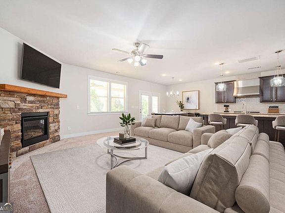 This home already has a professional home inspection in hand! No deal-breakers here! PLUS our preferred lender is offering up to $5000 in buyer credits! Make this home your dream home today! Located conveniently between Downtown Acworth and Woodstock, this charming four bedroom and four bath home is just six years old! From the moment you walk in the door, you'll notice the spacious kitchen and living area with daylight pouring in. This property is designed to easily entertain, with an open concept floor plan on the main level, as well as a guest bedroom and full bath! This lovely home boasts gorgeous stained wood kitchen cabinets with granite counters, and a large kitchen island. Cozy up next to your gas fireplace in the living room or enjoy morning coffee on your private, covered patio with fans and gas grill connection. The garage even has it's own countertop with sink and vent hood, perfect for when larger gatherings need a place to spill over into or can be used as a work space. The dining room is spacious and has chair molding and wainscoting. Once upstairs, you'll appreciate the idea of never having to carry laundry up or down stairs ever again! The laundry room is huge and has a large closet for all of your storage needs! The primary bedroom is spacious and inviting, and the primary bath has dual vanities, a separate tub and shower, and a huge walk-in closet. The spacious secondary bedrooms upstairs each have their own private en-suite bathroom. So many things to do close by! Patriots Park, Hobgood Park, Eagle Drive shopping, Downtown Woodstock, Downtown Acworth, Lake Allatoona, Redtop Mountain State Park, and much more. Fantastic schools - Boston Elementary, E.T. Booth MS, and Etowah HS. Don't miss the floor plans at the end of photos! Victory Preserve offers a gazebo and dog park and has lighted streets and sidewalks. Some photos are virtually staged.