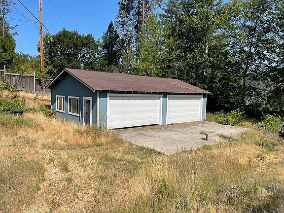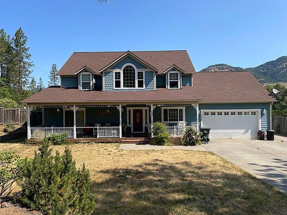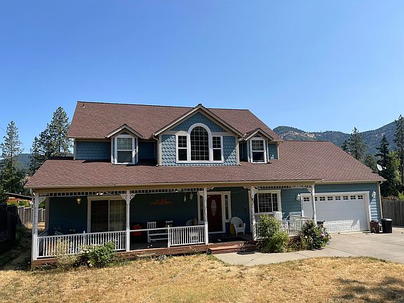 Home does have first floor master with big bathroom and walk in closet. Kitchen was beautiful, nice size, formal and eat in dining areas. Separate laundry with doors to garage and back deck. Three more bedrooms and 1 full bathroom upstairs with a big rec/family room. Does have two gas fireplaces, not in working condition anymore. Front porch and back deck to enjoy the surrounding mountains. Shop in back of property, big enough for at least two cars and lots of storage and projects. Septic has been redone within last 5 years. Well was shared with neighbor, seller drilled own well several years ago.