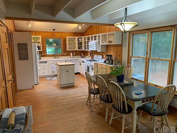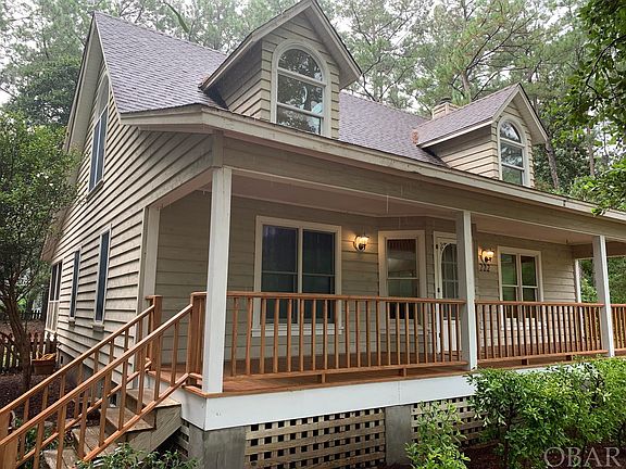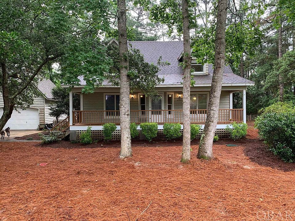 This warm inviting Cape Cod home is nestled in a quiet wooded cul-de-sac giving the privacy that you want but is conveniently located near Historic Downtown Manteo, schools, shopping, restaurants, and attractions. Featuring 3-bedrooms 2 baths with an open floor plan, country kitchen, covered porch, screened porch, and a detached garage. Upon entering, the custom wood arch windows are eye-catching and fill the home with an abundant of natural lighting. The impactful wood arch windows continue into the upstairs master bedroom with a walk-in custom closet. The ensuite bathroom is complete with a jetted tub and walk-in shower that offers an oasis of peace and safe haven after a long day. The screened porch is the perfect way to extend your outdoor time throughout the seasons. You can sip on a cool glass of sweet tea while enjoying the peaceful sights and sounds of nature or to share a meal in the fresh air with your family and friends. The detached garage is two levels with approximately 300 sqft of unfinished storage space, with potential for more space and storage. Schedule an appointment today and make this beautiful home your restful island retreat.