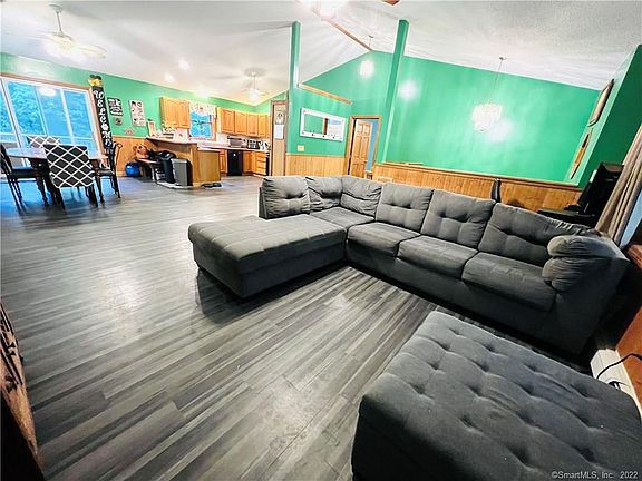 NESTLED back down the the NEW 2021 PAVED DRIVEWAY sits a 2000 OVERSIZED Raised ranch on 7.46 PRIVATE ACRES right on the RI LINE! HUGE DOUBLE DECKS for entertaining and a FENCED IN YARD for the dogs. 2020 BOILER and BASEBOARDS and a 2020 30 year ROOF. This OPEN FLOOR PLAN has a PRIMARY BEDROOM on one side w/ LARGE WALK IN closet and a SPACIOUS bathroom w/ DOUBLE VANITYS. On the opposite there are 2 additional bedrooms and a full bathroom in the middle. VAULTED ceiling in living room, APPLIANCED kitchen w/ BREAKFAST BAR and dining area w/ SLIDER leading out to DECKS. LOWER LEVEL has a LIBRARY/DEN/FAMILY ROOM w/ a NEWER BATHROOM GAS heater is (CONVEYING). ADDITIONAL room w/ BAR AREA and POOL TABLE (CONVEYING) w/ GAS HEATER (CONVEYING). PLENTY of parking for 8 VEHICLES and enough room to BUILD A GARAGE if you wish to do so. IF your looking for PRIVACY, SPACE and LOCATION close to 395, RI LINE and MASS LINE this is the home!