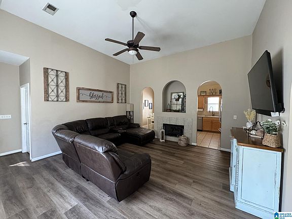 This charming one level home offers a large den with high smooth ceilings, gas fireplace, eat-in kitchen, and a separate dining room. Master suite has tray ceilings and lots of space. The master bathroom includes a walk-in closet, jetted tub, and walk-in shower. The fenced backyard has a screened patio to enjoy the mountain view. Convenient to Pelham and Alabaster shopping, restaurants, and hospital.