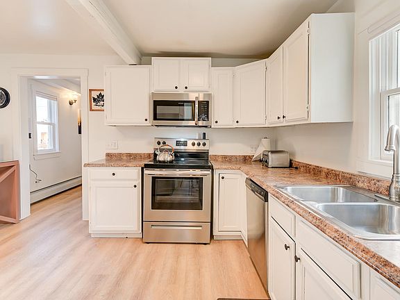 Come and see this freshly updated Conway Village four bedroom, two bathroom New Englander. Inside is bright and serene, with new laminate flooring and fresh paint throughout the home. The tastefully redone kitchen has brand-new appliances and opens into the spacious dining room, and off the kitchen is a renovated ¾ bathroom with convenient laundry. The living room with a large bay window is located in the front of the house, while a flex room can be used as a home office, playroom, studio, and more! Upstairs are four bright bedrooms, with new ceiling fans and floors, plus a full bathroom which has been renovated, including a new vanity and fixtures. New owners will enjoy the freshly painted roof, new water heater, and a new furnace (to be installed in May), among multiple other improvements. The spacious yard has plenty of room for garden beds, a fire pit, or kid’s play structure. Set in an ideal Conway Village location, walking distance to the Tuckerman Brewing Company, Ham Ice Arena, and just a short drive to restaurants, shopping, skiing, hiking, golf and more!