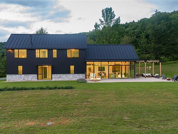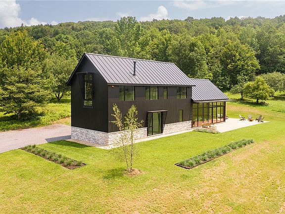 This rare NEW CONSTRUCTION was designed by AIA award-winning, RDK Architect, LLC and has received the prestigious Gold LEED certification. This modern & sustainable home was inspired by characteristics found in industrial agrarian buildings & Scandinavian farmhouses which exemplify minimalist and natural environments. Designed with 10 foot high glass walls and expansive windows & doors throughout to engage one with the panoramic views and surrounding landscape at all times. Completed in 2023 this home adheres to strict environmental standards and is designed to provide maximum energy efficiency, clean indoor air, natural light and uses safe building materials that ensure a comfortable, healthy environment. Sited on 5.8 private acres with pastoral & mountain views, it is minutes to Belleayre skiing, shopping and outdoor activities. With three bedrooms, three en-suite baths, a great room with large sliding doors to a gravel patio & pergola, office, and an attached garage this home exemplifies a perfect combination of design & functionality. The materials & details throughout this home are of the highest quality and sustainably sourced to abide by strict LEED standards.