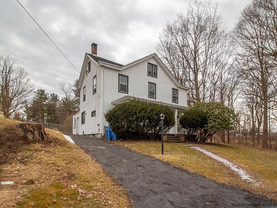 KINGSTON CLASSIC- This classic two story set on 1+ pet, play and garden friendly acre is ready for your own personal taste and style. The location offers easy access to Kingston's vibrant Stockade District with its wide array of restaurants, specialty shops, galleries and nightlife options all in a beautiful and historic setting. A gracious columned "rocking chair" porch welcomes you into a spacious 2000+ square foot traditional floor plan featuring a living room with a picture window framed by built in bookshelves and cabinetry, dining room, eat-in kitchen, den or home office, 4 bedrooms and 2 full baths. There's room for everyone! In additional to a full basement, there is a walk-up finished attic for yoga or play space. A detached 2 car garage is well located at the roadside and provides additional storage opportunity. The rear patio is perfect for fresh air entertaining and summer BBQs. Tremendous potential here for the savvy investor, first-time buyer or anyone who wants to be close to the action and excitement that is happening in Kingston today, PRICED RIGHT!!