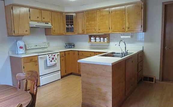 Very well-maintained home with master bedroom suite located on first floor. Roomy and convenient eat in kitchen is the hub of this home. Cozy den with electric fireplace just off kitchen. The living room is a nice-size. Floors throughout the main floor are a neutral laminate for easy care.95% efficient furnace and air conditioner are two years old.Most windows are newer; roof is 7 years old, electrical panel is updated. This home includes an amazing shed/workshop with 2nd floor storage,nice carport